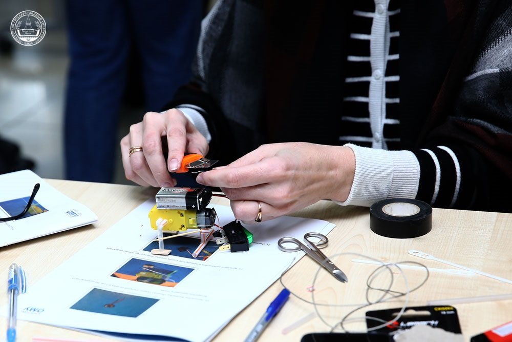 За три дня сотрудники Открытого молодежного университета научат югорских педагогов современным форматам преподавания урока технологии. Слушателей ждет мастер-класс по 3D-печати, кейсы мероприятий для самоопределения и профориентации, разработка квест-игры с элементами дополненной реальности, работа в группах по созданию проекта «Мини-робот» и др. Кстати, мини-робота рабочим группам предстоит собрать практически из подручных материалов – палочек от мороженного, зубочисток, коктейльных трубочек. Из технологичных материалов потребуются батарейки Крона и мотор-редукторы. А в заключительный день педагоги создадут приложение дополненной реальности на телефоне.
