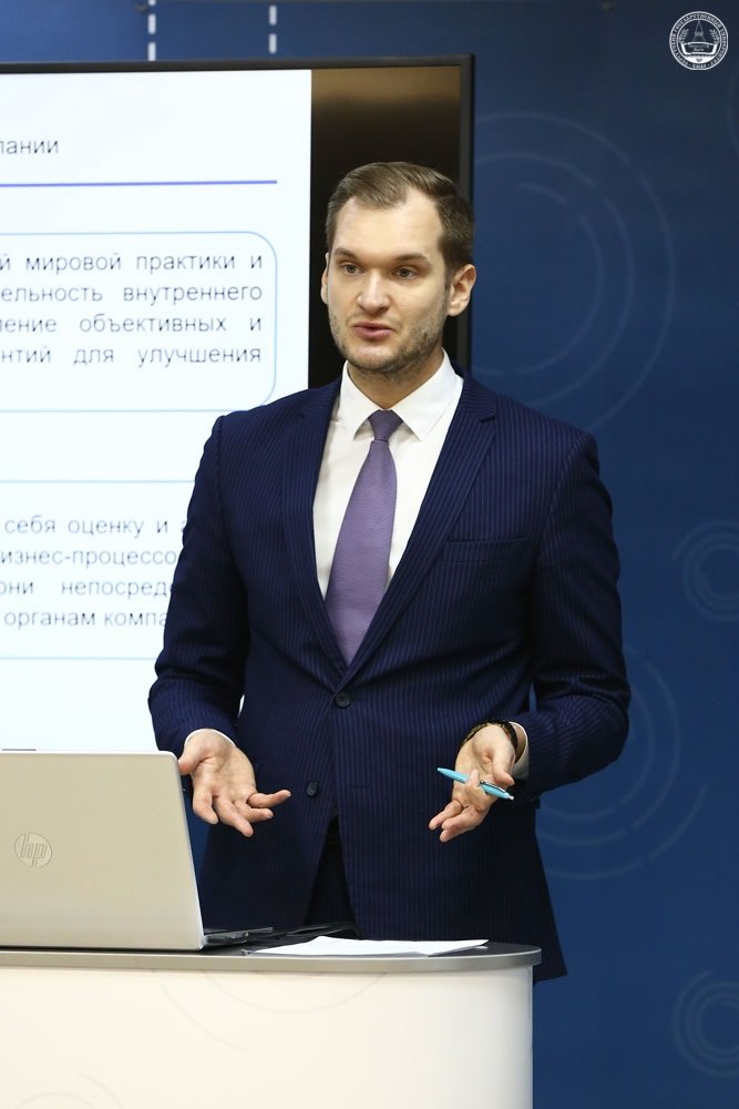 Модератором круглого стола выступил Масюк Никита Александрович, начальник Управления внутреннего аудита АО «Россети Тюмень», он рассказал участникам о внутреннем аудите в системе управления компанией. В ходе обсуждения доклада Никита Александрович ответил на вопросы участников мероприятия, а также рассказал о возможности вступления в члены Института внутренних аудиторов.