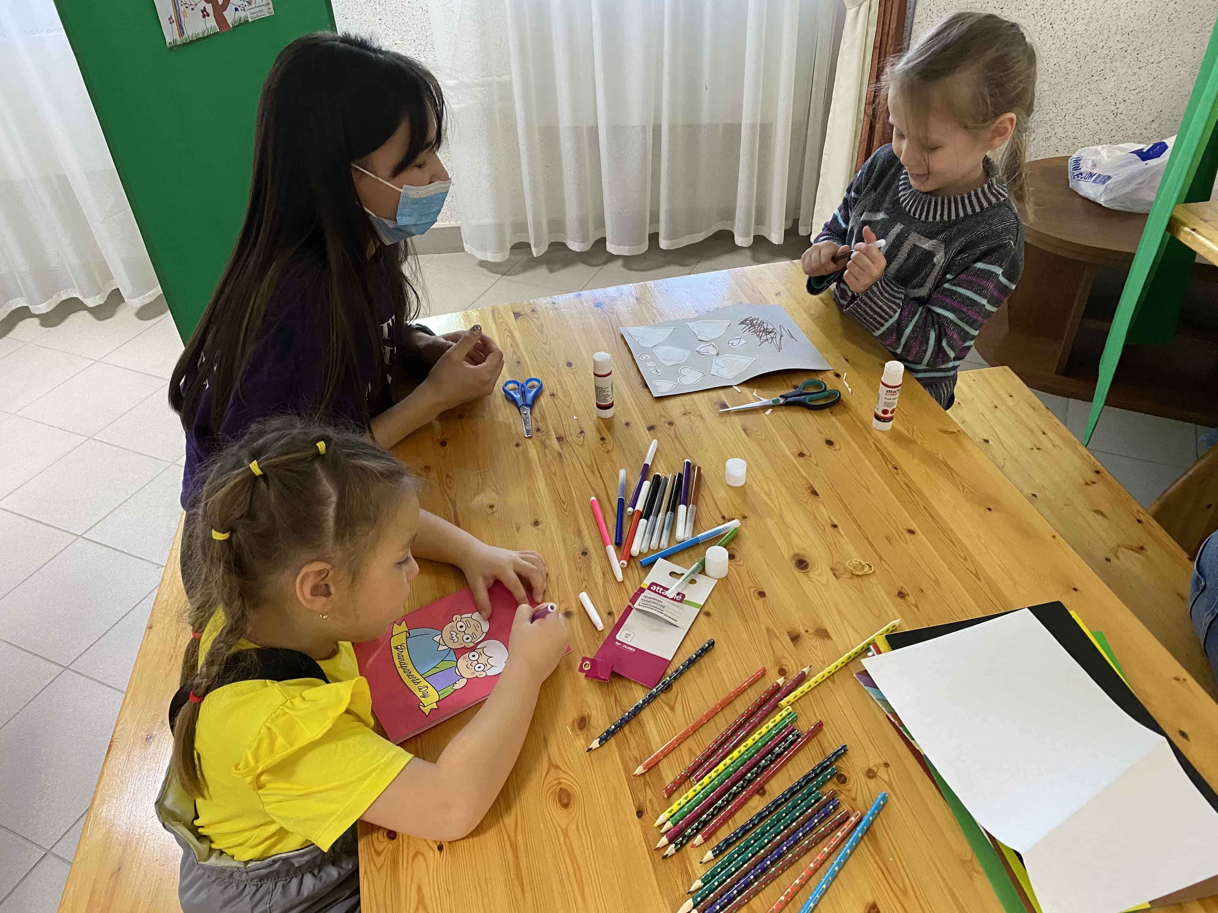 Дети с ОВЗ, находящиеся на лечении в реабилитационном центре для инвалидов, с радостью встретили студентов и воодушевленно принялись изготавливать из цветной бумаги и картона подарки для бабушек и дедушек.