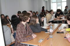 1 апреля текущего года в СурГУ высадился профориентационный десант с учащимися общеобразовательных учреждений города Сургута и студентами направления лингвистики СурГУ для участия в мероприятии «Что, где, когда?», посвященного 80-летию победы в Великой отечественной войне.