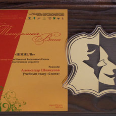 По итогам экспертной оценки жюри учебный театр «2 кота» Сургутского госуниверситета удостоен диплома первой степени в номинации «Лучший спектакль для юношества» и сертификата на 20 000 рублей за постановку пластического моралите по одноименной пьесе Николая Васильевича Гоголя «Шинель».