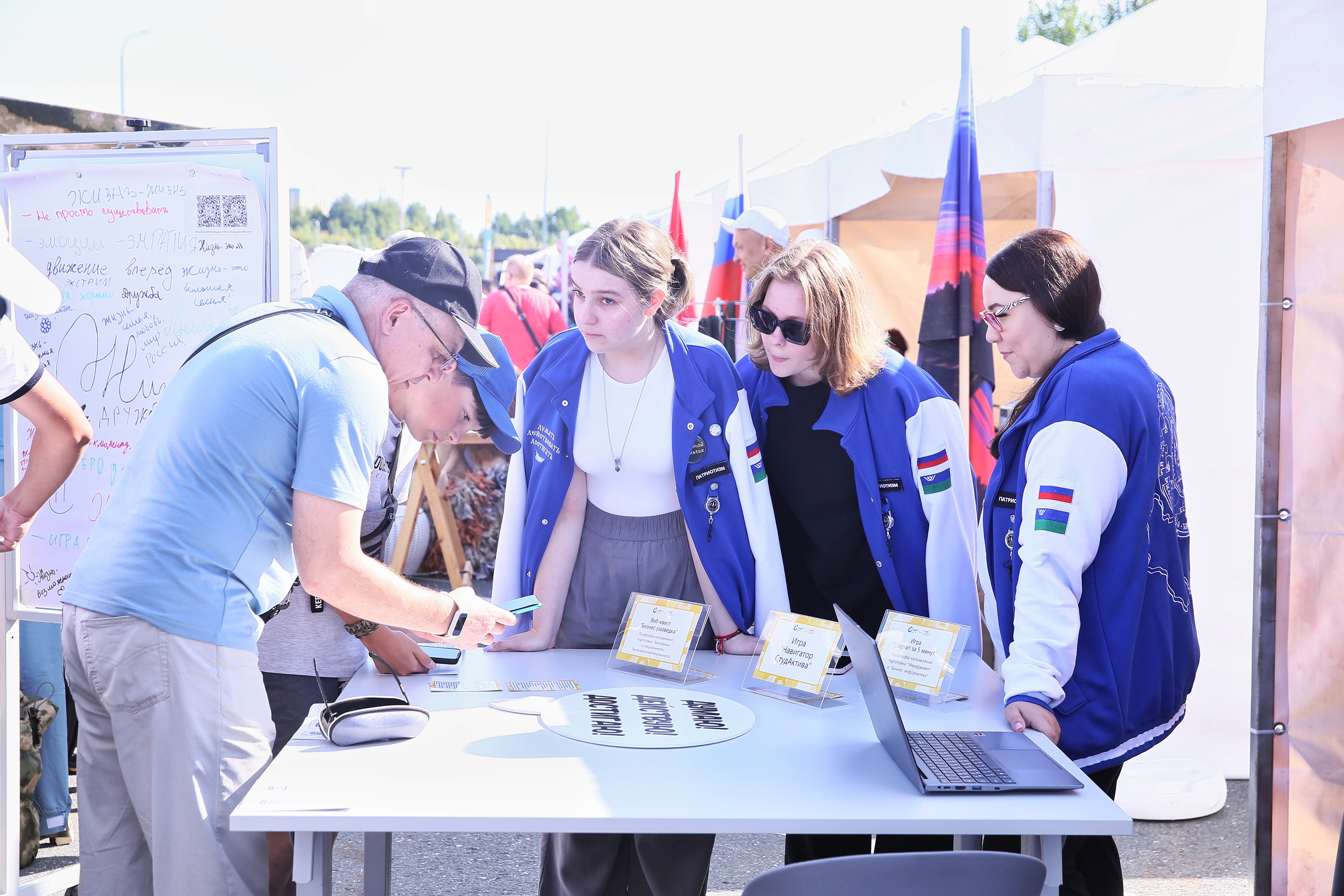 Все желающие могли получить открытки-визитки и заполнить их, чтобы обменяться с другими посетителями своими контактами, а также принять участие в активностях от студенческих объединений: собрать коллаж на тему студенчества или пройти мини-лабиринт от представителей Всероссийского студенческого проекта «Твой Ход».