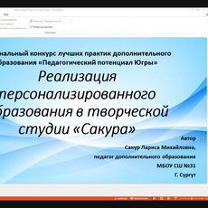 2. Лариса Сакур, педагог дополнительного образования школы № 31, г. Сургут (проект «Реализация персонализированного образования в творческой студии «Сакура»)