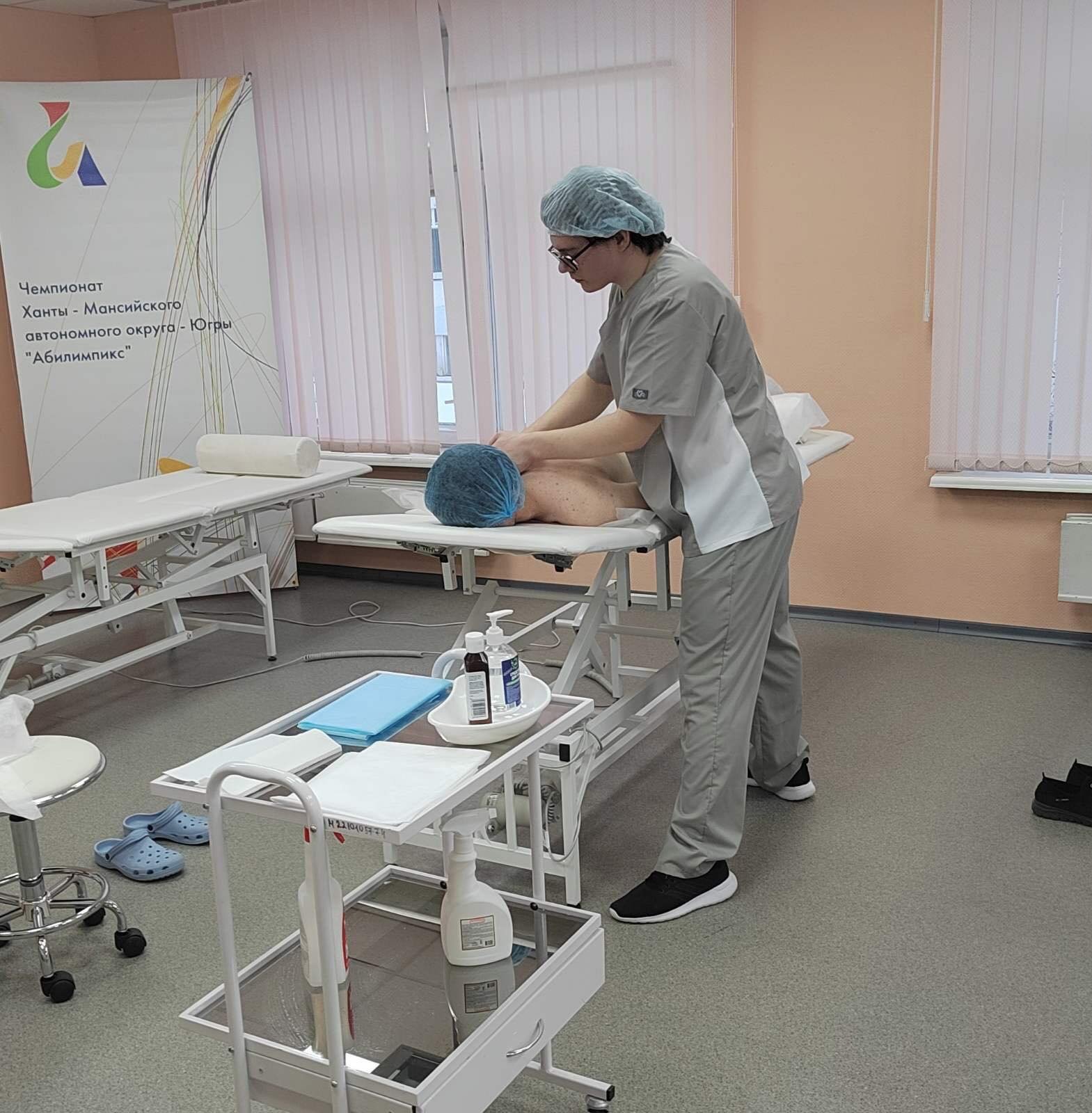За звания лучших в этом деле боролись студенты-третьекурсники: Артем Латышев, Олег Дорошенко, Светлана Шестакова, Луиза Пешхоева, Давит Шахназарян. Все они являются представителями Медицинского колледжа СурГУ. В первый день конкурсанты по всем канонам и с соблюдением эпидемиологических мер безопасности должны были выполнить медицинский массаж на живом пациенте, роль которого исполнял статист. Учитывалось все: от внешнего вида конкурсанта, организации рабочего пространства, соблюдения санитарно-гигиенических норм и опроса пациента до четкого соблюдения регламента и последовательности действий. Во второй день предстояла уже произвольная программа. Здесь каждый студент сам выбирал технику массажа и зону его проведения. За ходом всех испытаний наблюдали эксперты, которые не только фиксировали все действия и ошибки участников, но и вносили до 30 % изменений в конкурсные задания. Это было обязательное условие. Но даже этот форс-мажор не помешал успешно справиться с поставленной задачей Олегу Дорошенко. Именно он стал победителем VII Регионального чемпионата «Абилимпикс» в компетенции «Массажист».