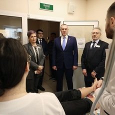 В ходе рабочего визита почетная делегация в сопровождении ректора СурГУ Сергея Косенка, и. о. проректора по науке и технологиям, руководителя дирекции программы «Приоритет-2030» – Анастасии Никифоровой побывала в Симуляционно-тренинговом аккредитационном центре. Кстати, именно здесь в условиях, максимально приближенных к реальным, осуществляется практическая подготовка специалистов сферы здравоохранения. Первые лица округа также высоко оценили возможности генетической лаборатории «Биобанк Югры» с новыми подходами к генетической диагностике и лечению наследованных заболеваний. В этой лаборатории уже сформирован биобанк 12 000 образцов пациентов с наследственными и мультифакторными заболеваниями, в том числе проводятся исследования микробиомов, молекулярно-генетическая диагностика и таргетная терапия.