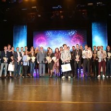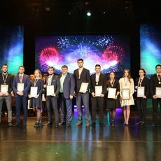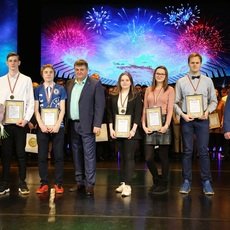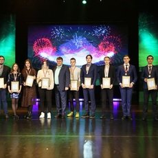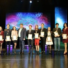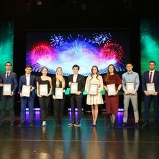 Далее прошла церемония награждения сборных команд СурГУ, занявших первые места в ХХ Универсиаде вузов Югры: по мини-футболу, по настольному теннису, по плаванию, по баскетболу (и женщины, и мужчины). Ну а лучшей командой нашего университета по результатам спортивного сезона 2018-2019 учебного года была признана сборная по мини-футболу. Это «сообщение из конверта» зал встретил бурными аплодисментами.