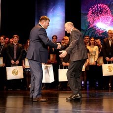 Ну а кульминацией торжественного вечера стало оглашение имён лучших спортсменов высшего образовательного учреждения. Право вручить им заслуженные награды предоставили и. о. ректора СурГУ Ивану Даниленко.