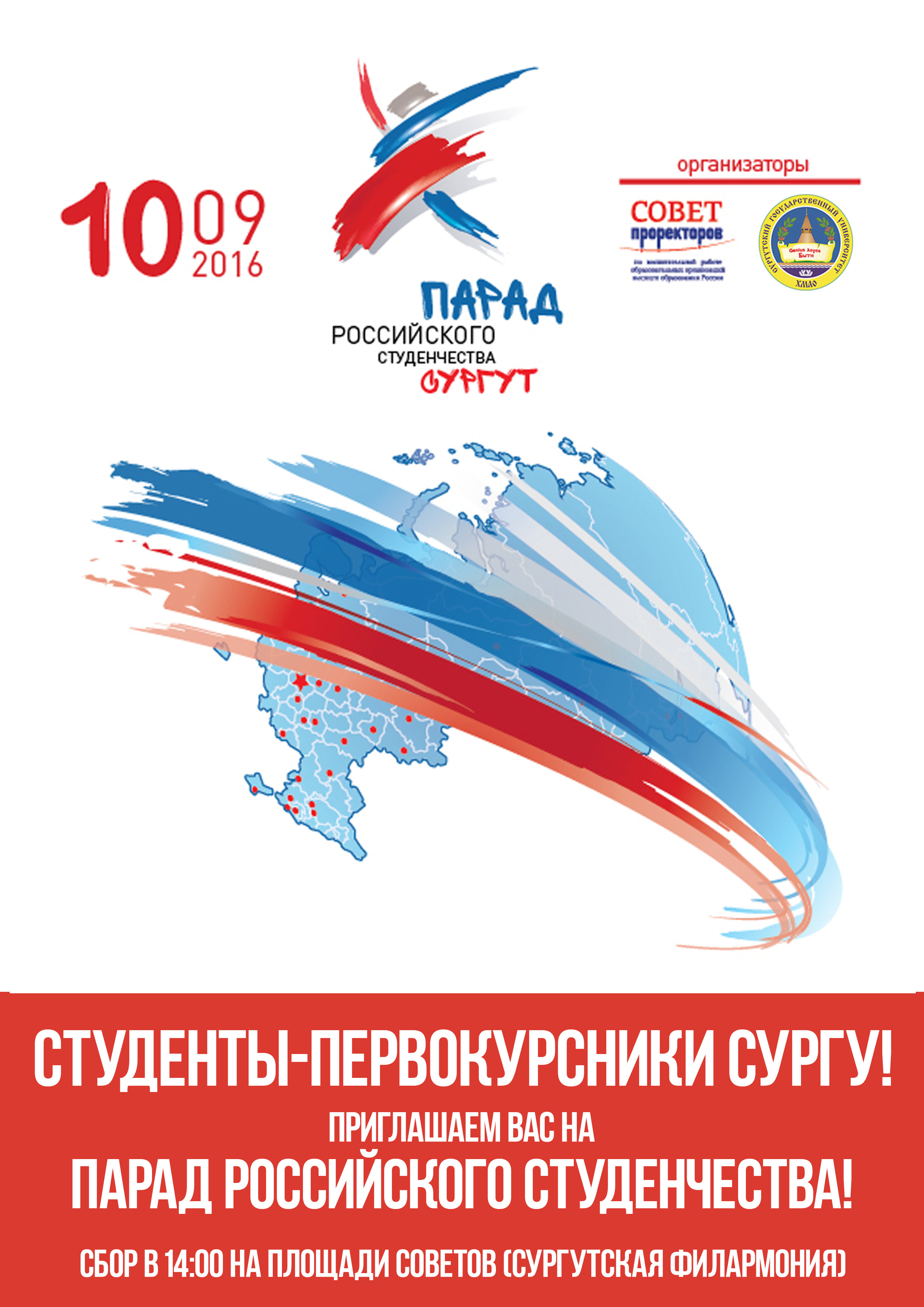 10 сентября 2016 года в 14:00 в г. Сургуте от площади Филармонии до площади СурГУ пройдет Парад российского студенчества.