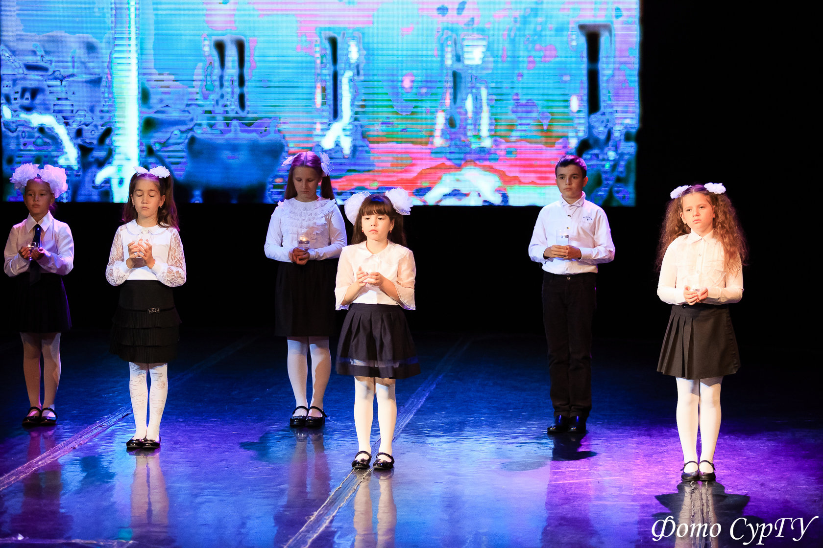 Вокализ в исполнении ансамбля «Альтус», чтение стихотворений, видео- и фотокадры с места трагедии погрузили зрителя в ужас Дня знаний в Беслане. Многие из присутствующих в зале не могли сдержать слез.