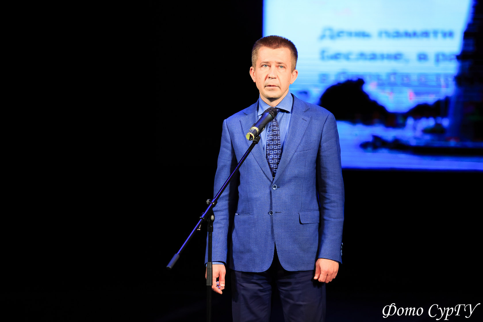 В своей приветственной речи первый проректор СурГУ Иван Даниленко отметил: «Уже шестой год подряд в Театре СурГУ проводится День памяти трагедии в Беслане. Я призываю всех быть добрее! Мира, здоровья вам и вашим семьям!».