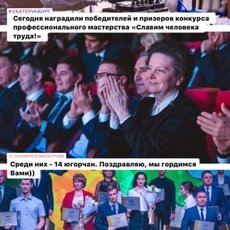 В официальном аккаунте главы региона Наталья Комарова опубликовала фото с надписью: «Сегодня наградили победителей и призеров конкурса профессионального мастерства «Славим человека труда!». Среди них – 14 югорчан. Поздравляю! Мы гордимся Вами)))».