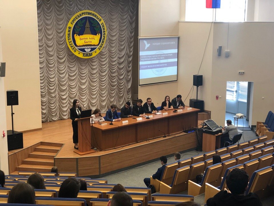 Нынешний председатель - Шаймарданов Айнур - представил отчет о работе студенческого Совета 2018 года, в котором отразил все достигнутые улучшения и изменения за прошедший период. Это стало хорошей информативной площадкой для анализа и в будущем составления достойной программы работы новой структуры Совета.