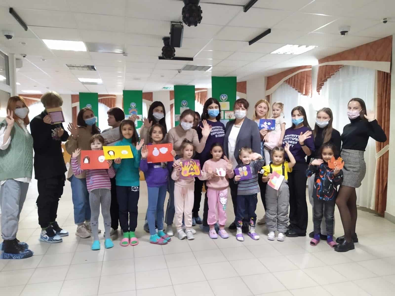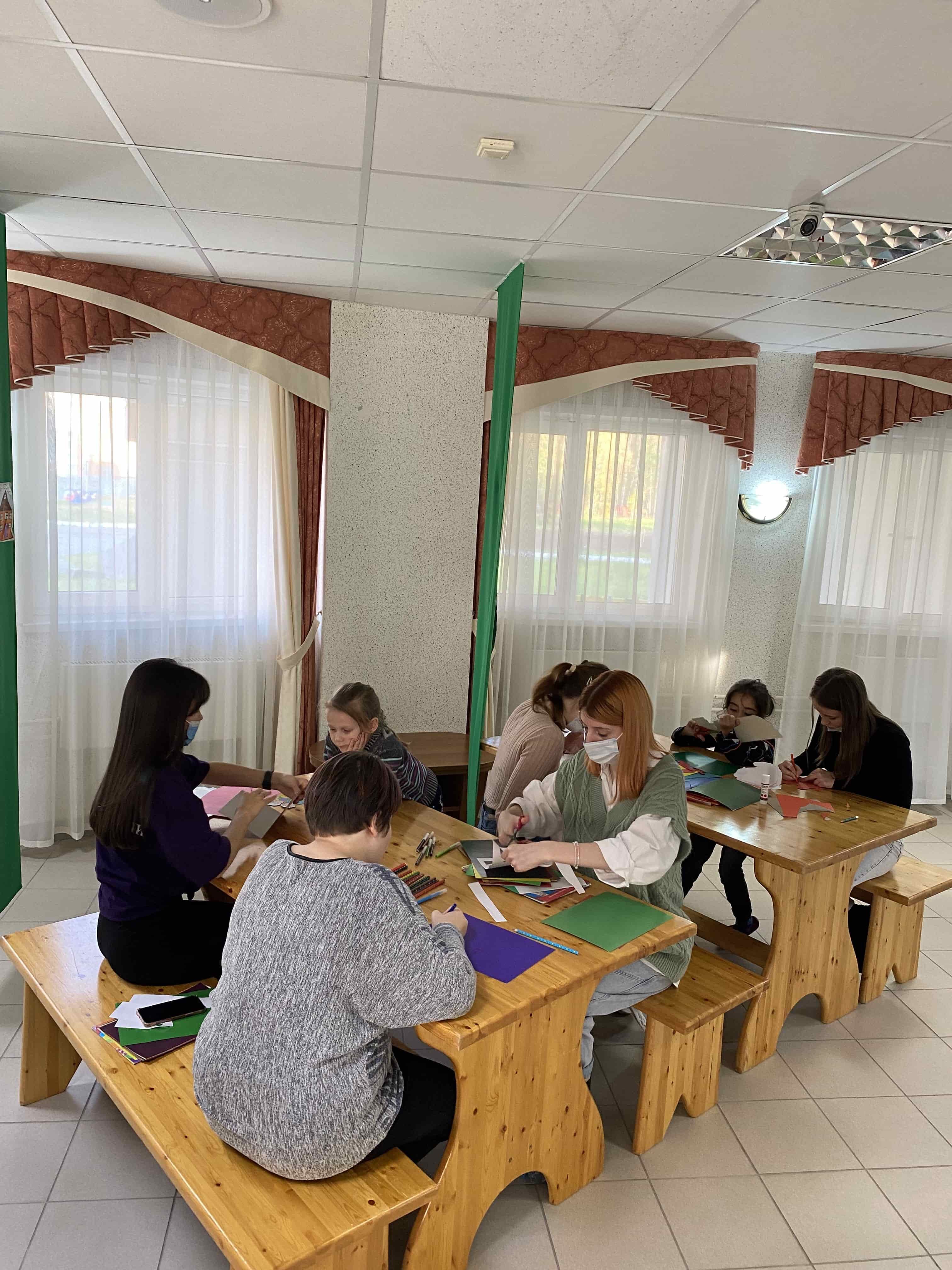 Дети с ОВЗ, находящиеся на лечении в реабилитационном центре для инвалидов, с радостью встретили студентов и воодушевленно принялись изготавливать из цветной бумаги и картона подарки для бабушек и дедушек.