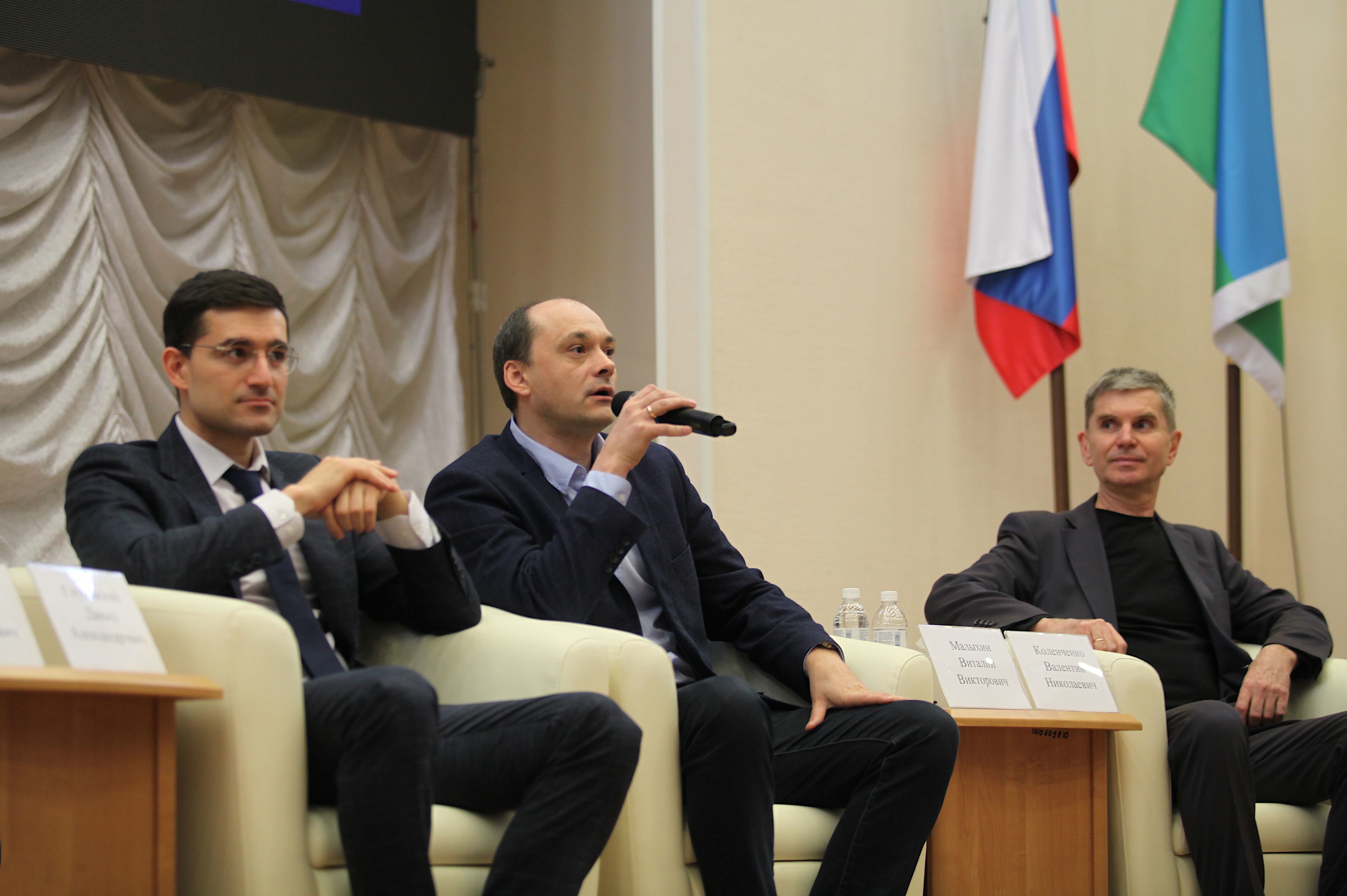 В преддверии Дня защитника Отечества в Сургутском государственном университете состоялось традиционное мероприятие «Мужской разговор». Со студентами побеседовать о насущном пришли Давыд Александрович Глуховский, председатель Ассоциации выпускников СурГУ, и начальник службы по связям с общественностью и СМИ ООО «Газпром трансгаз Сургут»; Виталий Викторович Малыхин, генеральный директор мультимедийного исторического парка «Россия – моя история. Югра» и Валентин Николаевич Коленченко, председатель правления МОО «Союз Отцов Сургута».