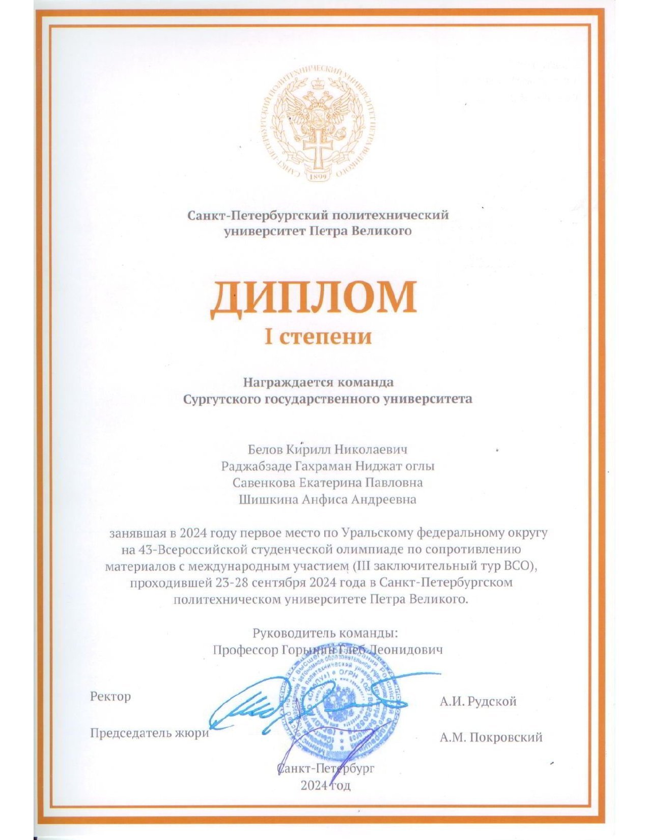 В мероприятии приняли участие студенты 3–4 курсов очной формы обучения Политехнического института Сургутского государственного университета: Белов Кирилл Николаевич, Савенкова Екатерина Павловна, Раджабзаде Гахраман Ниджат оглы, Шишкина Анфиса Андреевна.