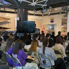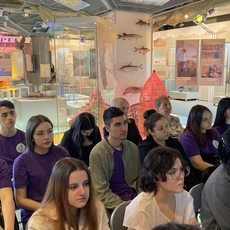 Волонтеры Дьяченко Мария, Рыбалко Виктория, Исмаилов Вадим, Сейфуллаева Ханымгюль, Курбанова Варвара, Зайнагутдинова Аделя, Исмаилова Макселима, Миндов Валерий, Пушкарёва Софья помогали в организации встречи и с помощью интерактивной программы побывали в прошлом города Сургута.