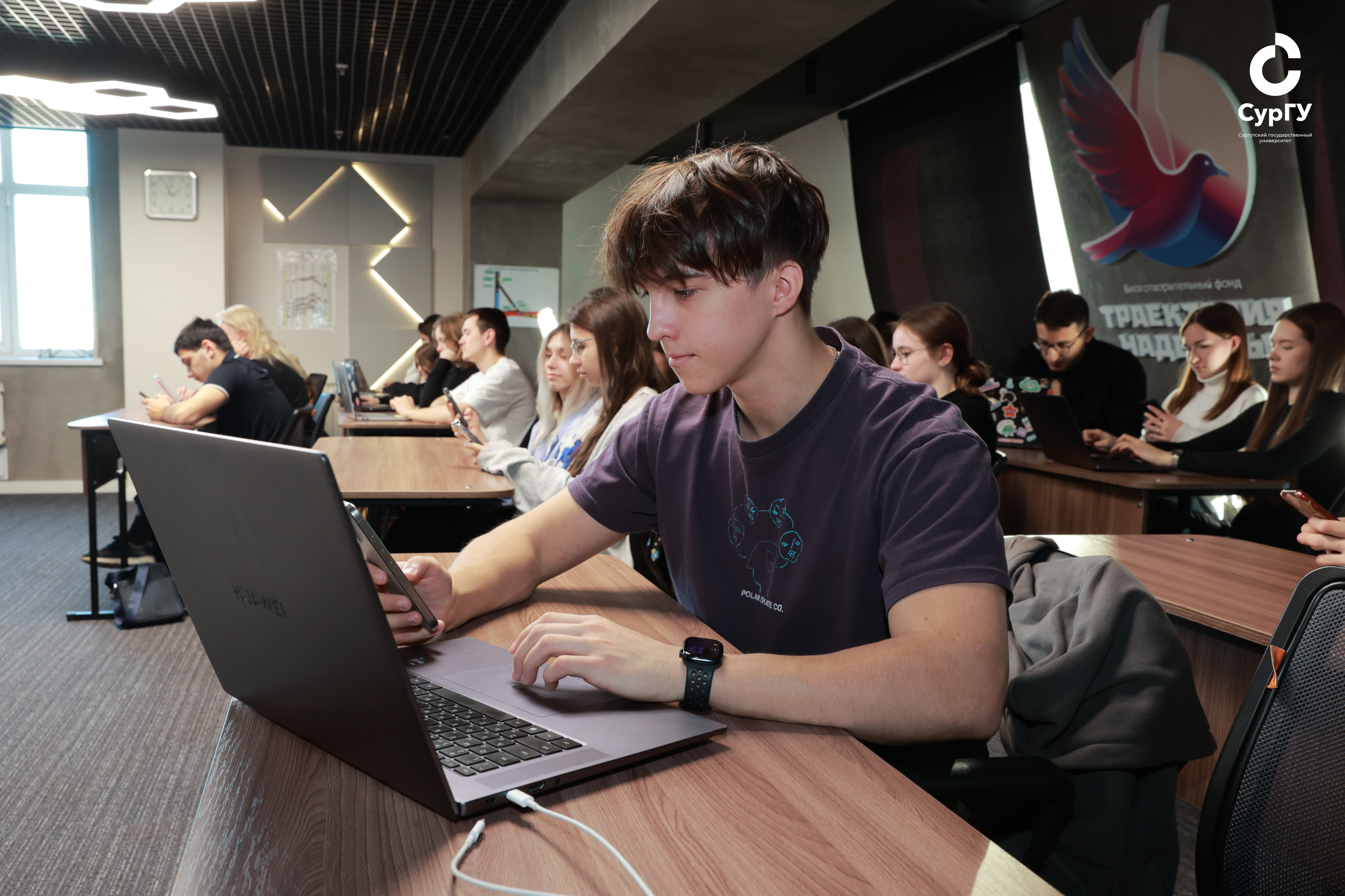 Среди студентов Сургутского государственного университета были отмечены победители, показавшие высокие результаты. Особого внимания заслуживает студент второго курса Института экономики и управления Дмитрий Сергеевич Кауртаев, набравший максимальные 100 баллов.