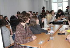1 апреля текущего года в СурГУ высадился профориентационный десант с учащимися общеобразовательных учреждений города Сургута и студентами направления лингвистики СурГУ для участия в мероприятии «Что, где, когда?», посвященного 80-летию победы в Великой отечественной войне.