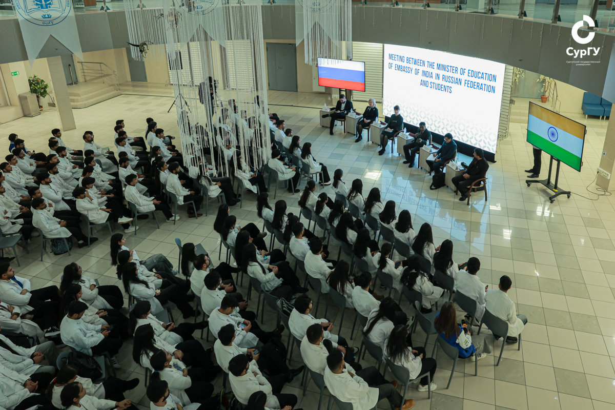 Министр образования Посольства Индии Винай Кумар рассказал о развитии партнерства в сфере образования между Россией и Индией, и об обратной связи от иностранных студентов из других российских вузов. В своем выступлении он отметил высокое качество медицинского образования, которое предоставляет СурГУ, хорошее оснащение и материально-техническую базу вуза. Спикер выразил надежду, что студенты достигнут своих целей и станут настоящими профессионалами. Во встрече также принял участие директор компании «MediCare Global Education» Джитендра Кумар, который ответил на волнующие студентов вопросы – об обучении, аккредитации и итоговой аттестации, юридических аспектах. Спикер подчеркнул, что в Сургут он приезжает уже в течение пяти лет, и его цель – помогать новым студентам адаптироваться в городе и университете. Джитендра Кумар поблагодарил СурГУ за сотрудничество. По его словам, СурГУ – один из самых популярных российских вузов среди индийских абитуриентов благодаря высокому качеству обучения и безопасности общежитий, а также отметил высокую конкуренцию среди поступающих.