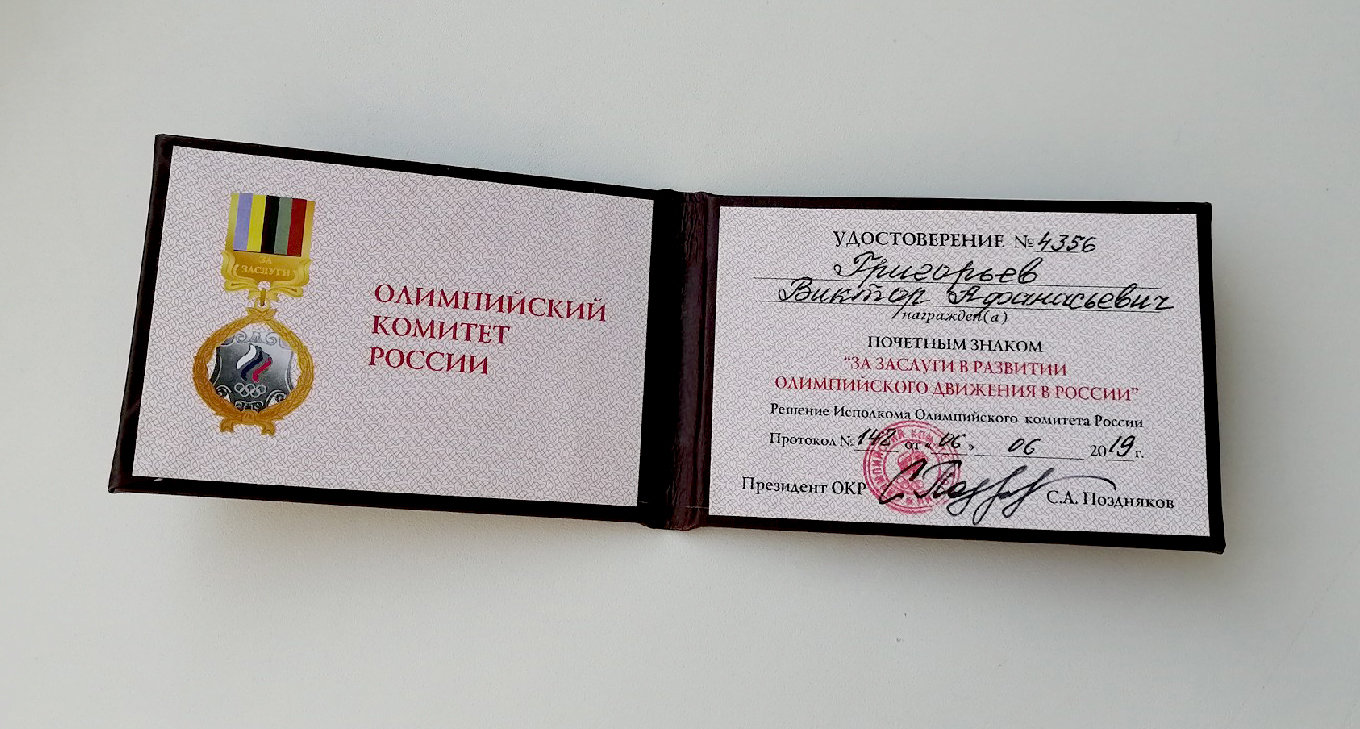 Еще 6 июня этого года на очередном заседании исполкома Олимпийского комитета России было принято решение наградить почетным знаком ОКР «За заслуги в развитии олимпийского движения в России» группу из 18 специалистов. В их число вошел и Виктор Григорьев – председатель Всероссийской коллегии спортивных судей Федерации лыжных гонок, профессор Сургутского государственного университета.