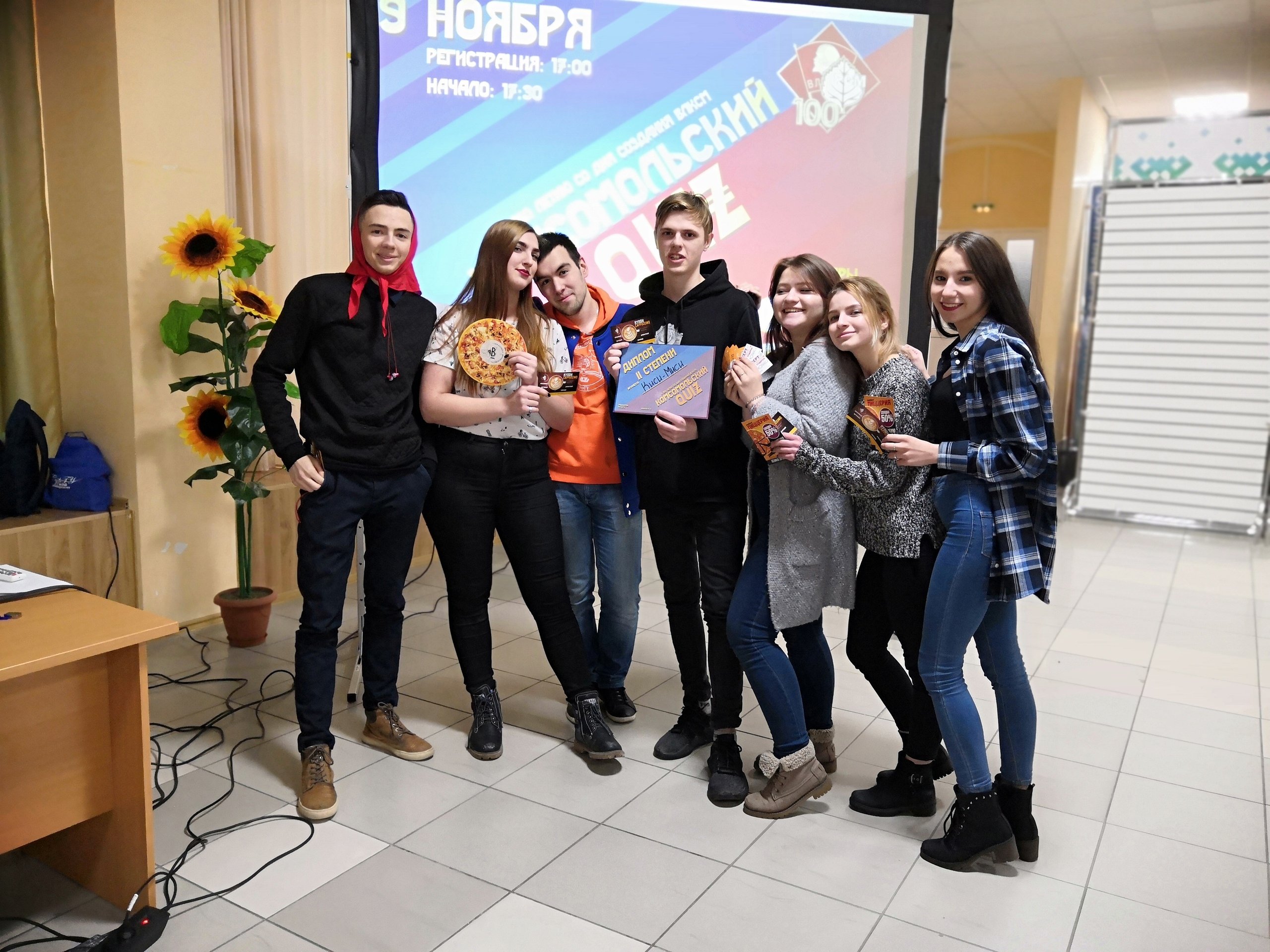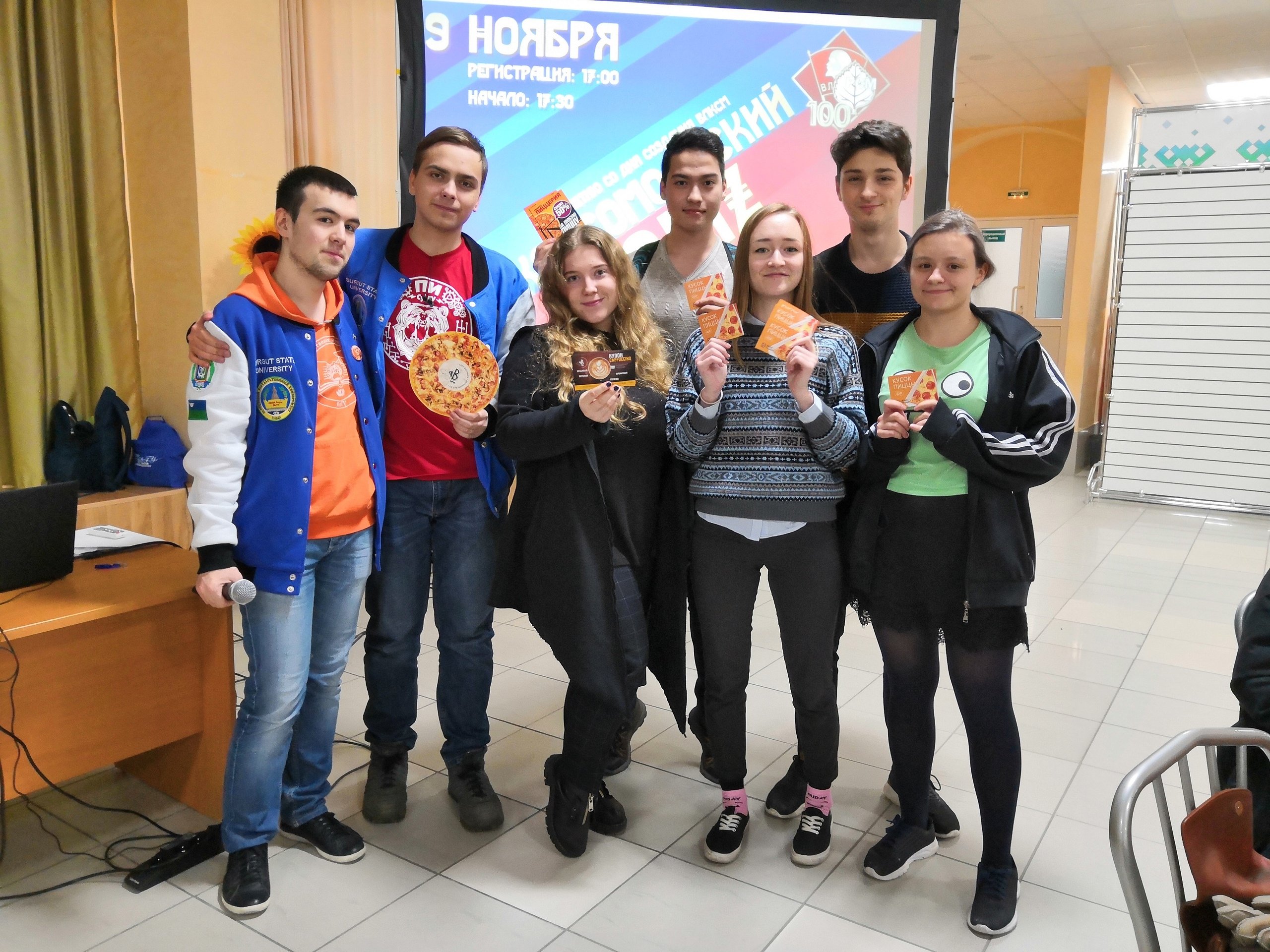 9 ноября 2018 года в многофункциональном зале Сургутского госуниверситета прошел первый в этом учебном году Quiz! И посвящен он был большой юбилейной дате в истории нашей страны, ведь совсем недавно, 29 октября, прошло ровно 100 лет со дня создания Всесоюзного ленинского коммунистического союза молодежи — ВЛКСМ!