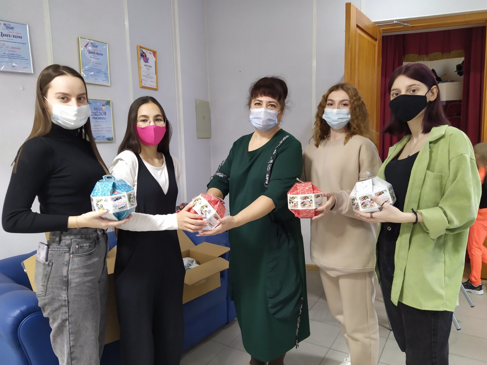 В рамках реализации гранта губернатора Югры Натальи Комаровой волонтеры Данилова Амелия, Азиева Марина, Махмудова Арина, Туркменбаева Асият, Вишнягова Евгения, Лысенко Анастасия, Хоменко Елизавета, Данилова Амелия, Сатритдинова Илюза, Мусаева Гаднаб, Галеева София, Махмудова Арина, Борисенко Анастасия, Мороз Юлия, Алиева Манижа, Таджибова Рая, Бабаева Лелия, Алиева Гунель, Салихова Иминат, Пашаева Айдан подготовили и привезли новогодние сладкие подарки детям.